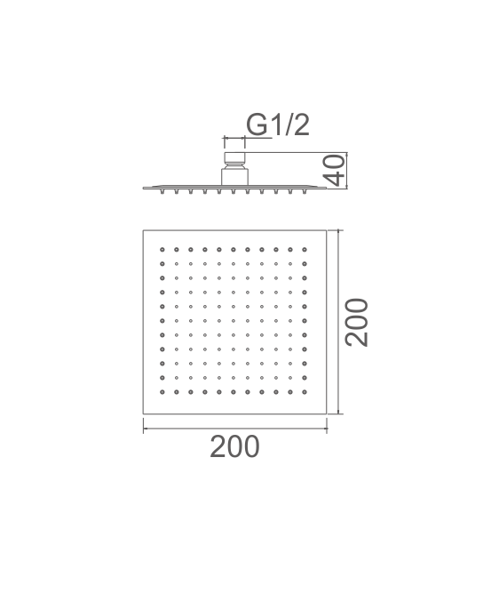 Rociador de ducha cuadrado 200x200mm inox Efecto lluvia suave